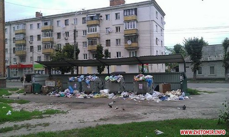 Зранку 3 серпня на деяких житомирських вулицях контейнери для сміття були переповнені, від відходів стояв сморід.