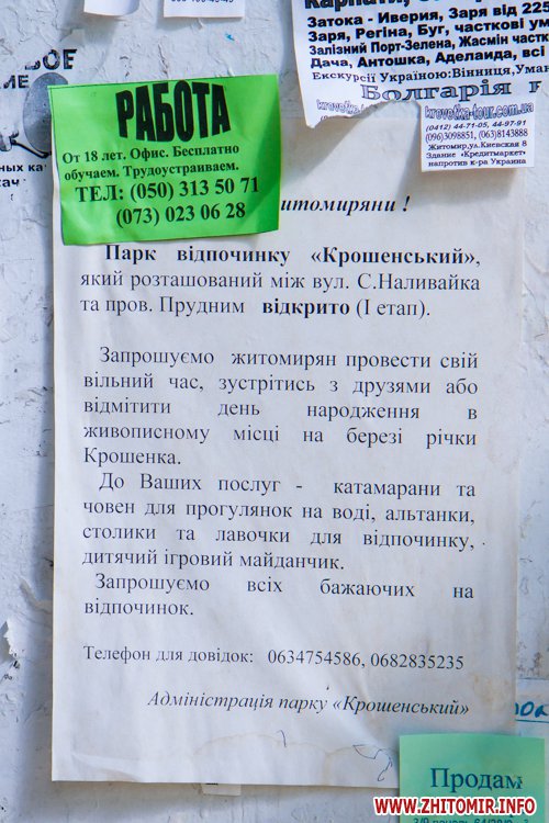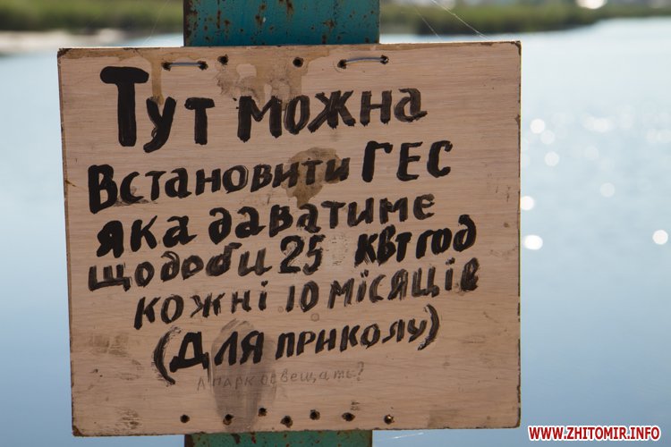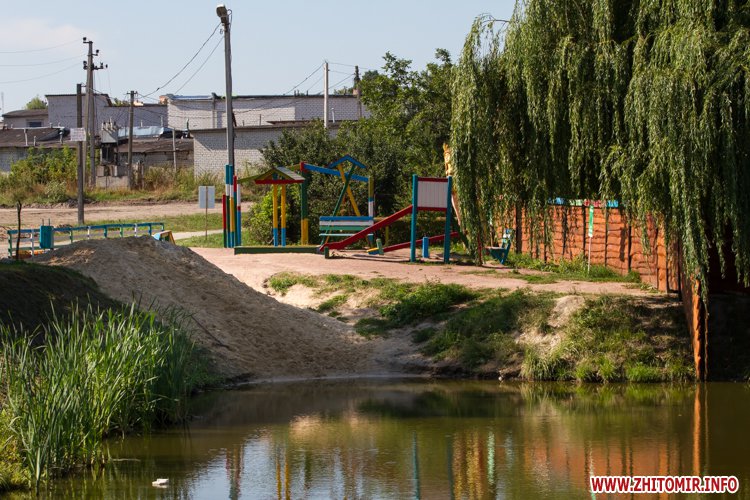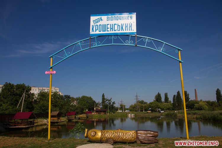 «Тут були зарості, падала каналізація в річку Крошенку на протязі більше 25 років з 11 будинків, тобто, будівельники, коли новий мікрорайон здавали, замість каналізації підключили в лівньовку. Собак топили, хащі були, дуже погана ситуація. Ми почали ним займатися ще два роки тому, потроху розчистили. В міста не було коштів, я замовив проектну документацію і за власні кошти зробив проектну документацію. У цьому році, згідно рішення виконкому, нам надали дозвіл на проведення благоустрою цієї території, встановлення малих архітектурних форм, тобто – альтанки, різні елементи благоустрою, (фігурки) крокодильчиків, дельфінчиків… Це земля міста, вже прийнято рішення сесії міської ради про надання дозволу на розробку проектної документації, на приєднання до гідропарку, тобто, це буде власність громади. Інфраструктура буде наша, ми сюди вкладаємо кошти. Це буде парк відпочинку для мешканців району Крошня і, в принципі, для усього міста. До нас уже їдуть і з Польової, і з Корбутовки, навіть з Коростишева приїжджали... Все упирається в фінанси. Справа в тому, що ми це робимо за приватні кошти, фінансування у нас немає ні з державного, ні з місцевого бюджету, а тільки те, що заробили», - розповів Володимир Тичина.