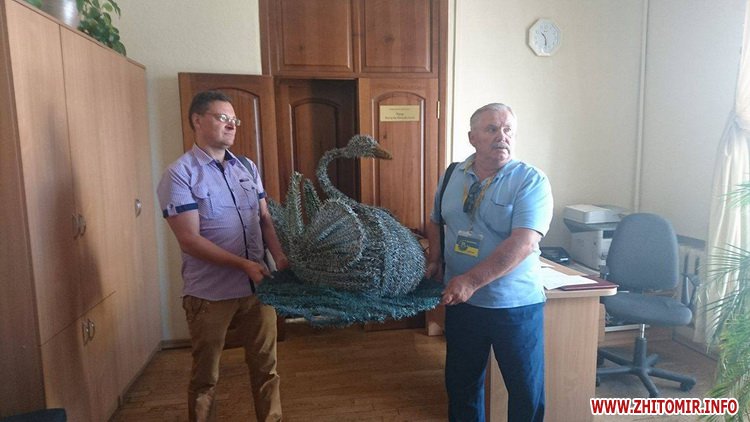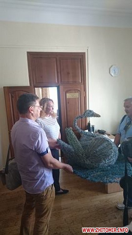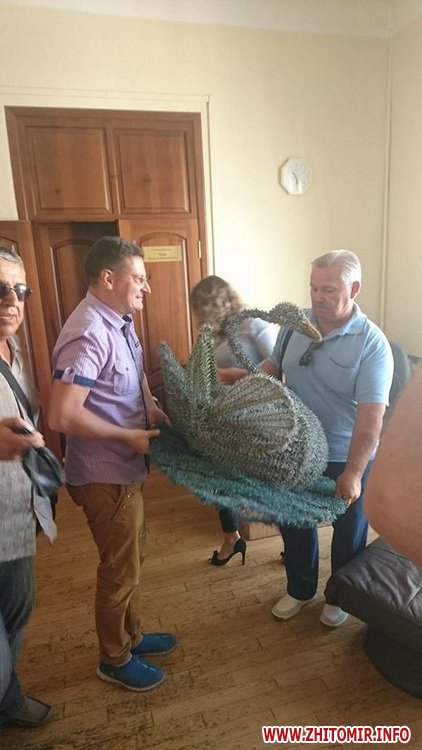 8 августа около 10.30 утра в приемную секретаря Житомирского горсовета Наталии Чиж пришли мужчины с «каркасом» лебедя.