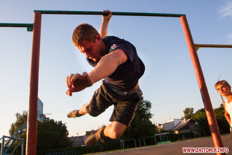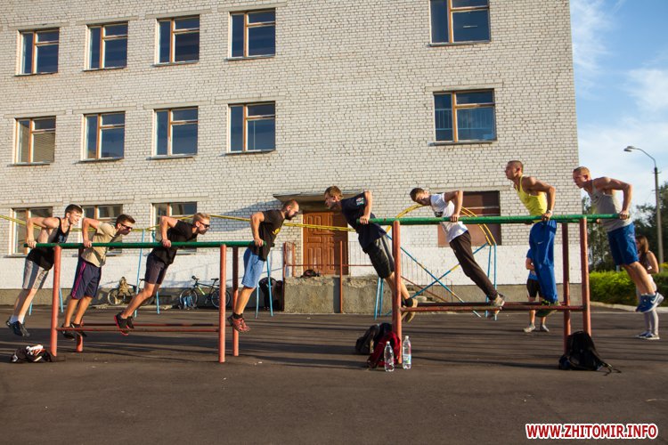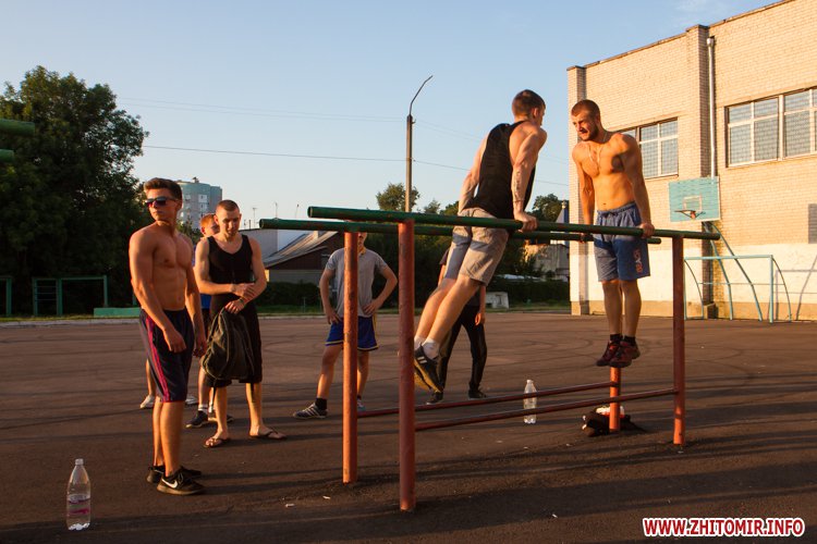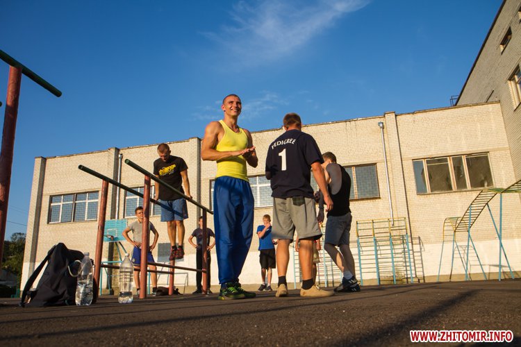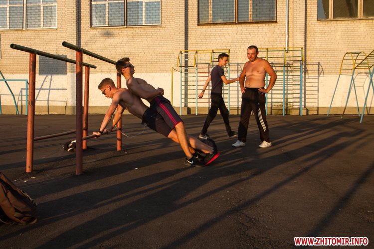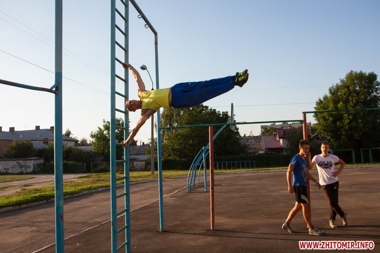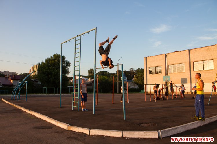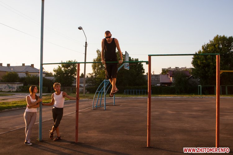 У Житомирі на спортивних майданчиках загальноосвітньої школи № 7 та агротехнологічного колежу чотири рази на тиждень займаються воркаутери. Безкоштовно тренуватися разом із ними може кожен бажаючий.