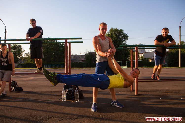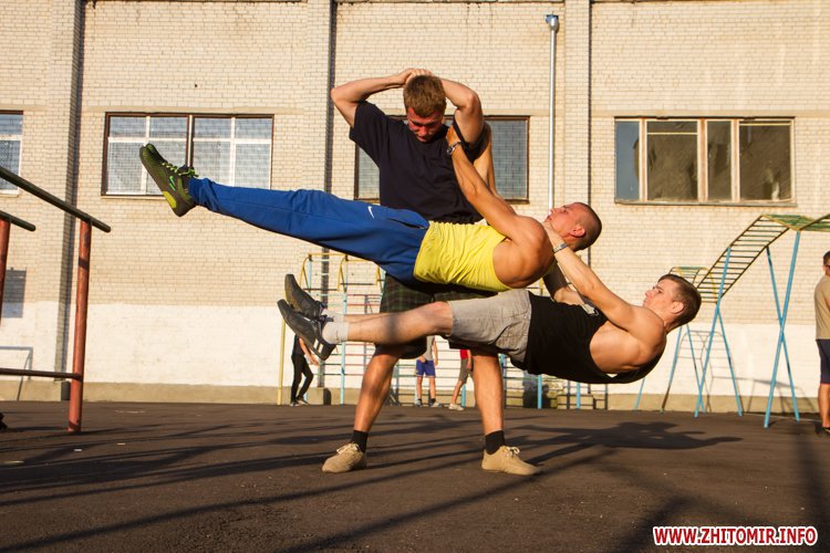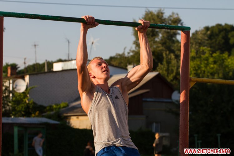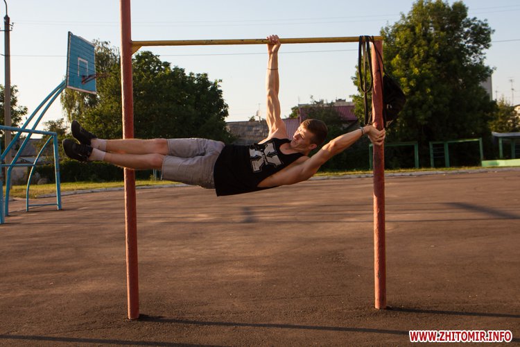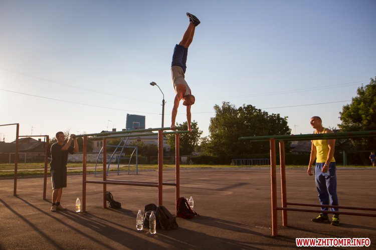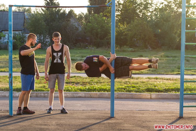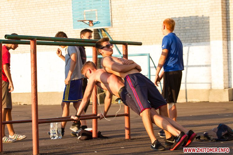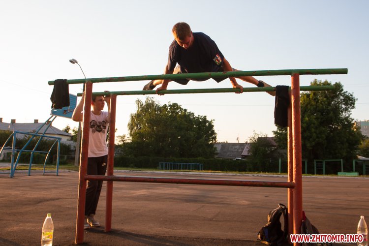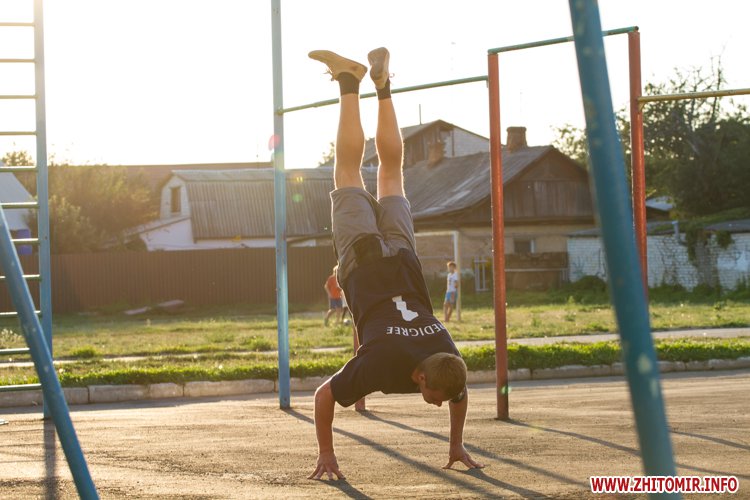 У Житомирі на спортивних майданчиках загальноосвітньої школи № 7 та агротехнологічного колежу чотири рази на тиждень займаються воркаутери. Безкоштовно тренуватися разом із ними може кожен бажаючий.