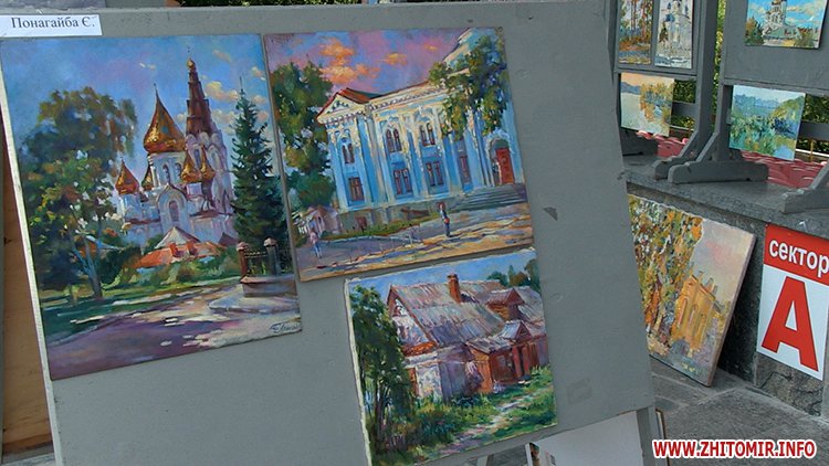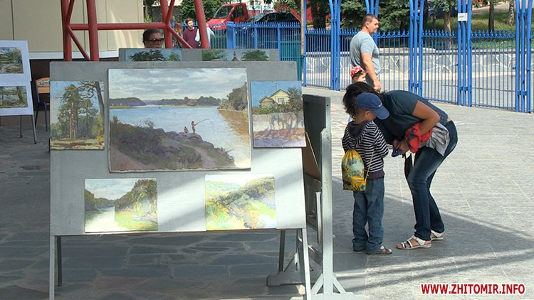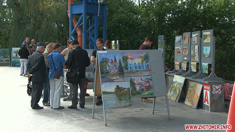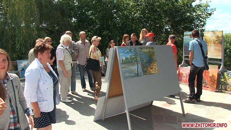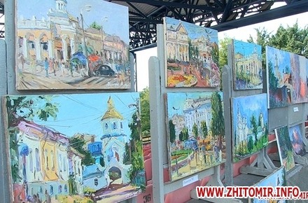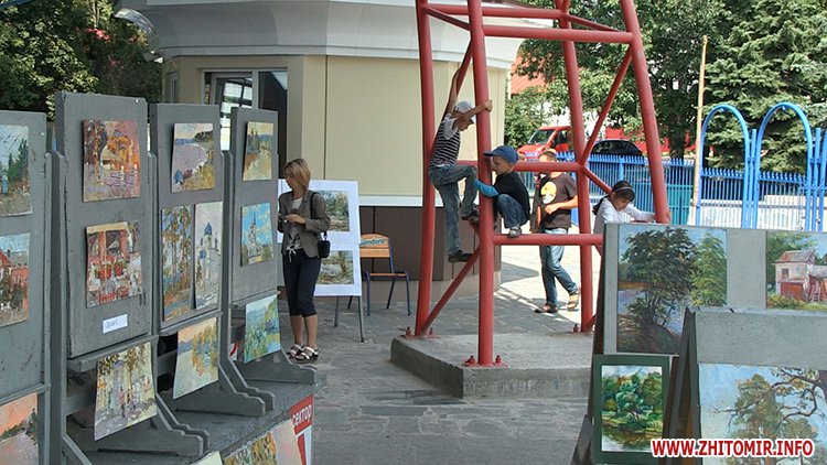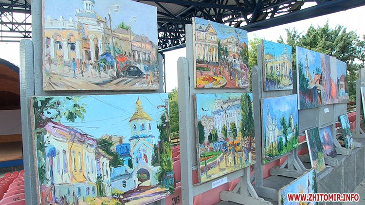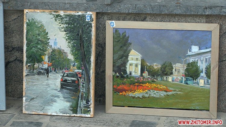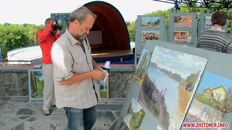 «Живучи в Житомирі, по більшості ми працювали у передмісті. Основні наші мотиви були пов’язані з місцями, де людей небагато і можна спокійно вести роботу. Художники, що приїхали в Житомир, відкрили можливість безпосередньо працювати на вулицях Житомира. Тут є мотиви центральних вулиць», - розповідає художник Ігор Воропай.