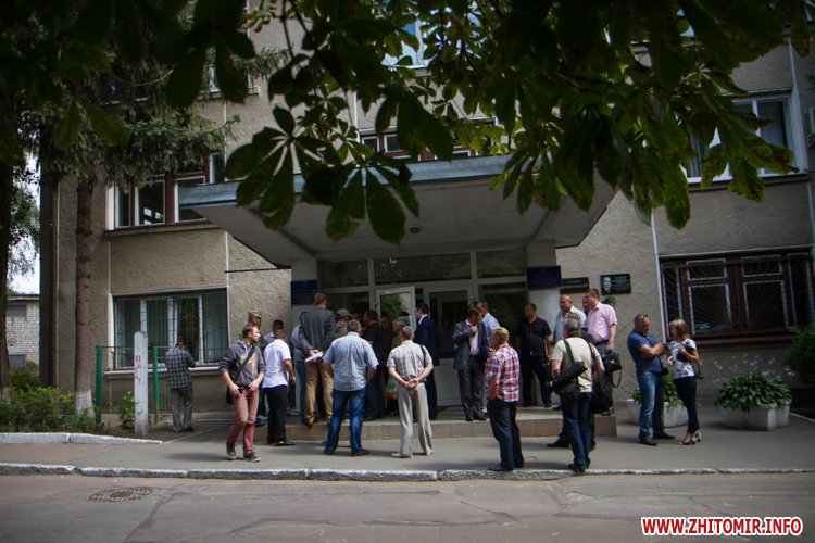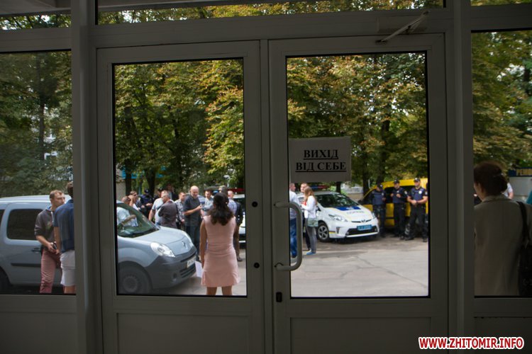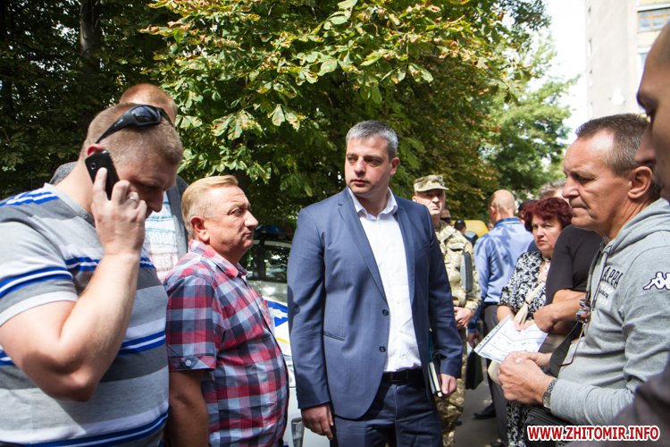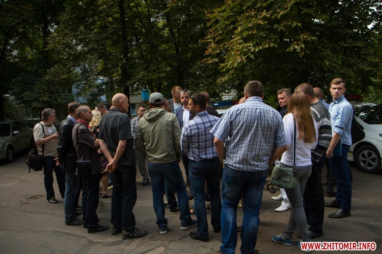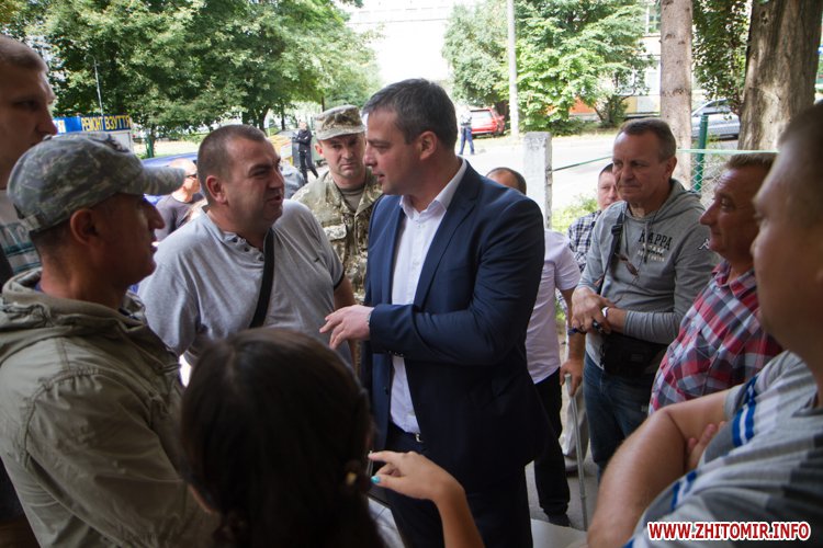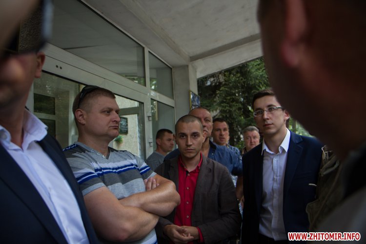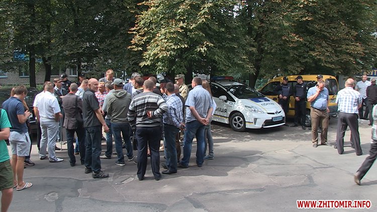 У вівторок, 16 серпня, кілька десятків військовослужбовців та активістів зібрались біля будівлі управління Держгеокадастру в Житомирській області.
