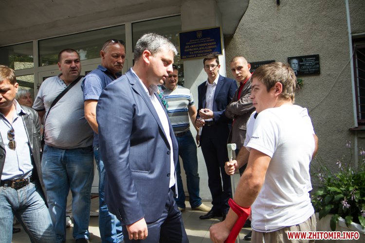 Люди прийшли, бо, за їх інформацією, сьогодні мали представити заступника начальника управління. Учасники АТО впевнені: це призначення має відбутись, бо виконуючого обов’язки начальника мають звільнити. Окрім цього, людей обурює й те, що в Житомирській області не працює електронна система реєстрації, і саме через це військовослужбовці, поранені учасники АТО та сім’ї загиблих не можуть отримати земельні ділянки.