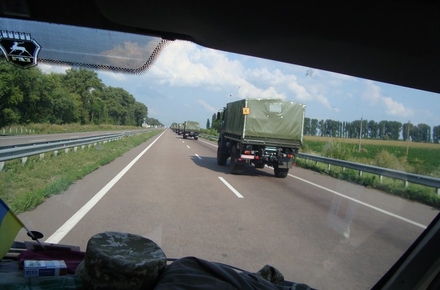 Кілька разів Людмила Коберник (вона сиділа за водієм, а я за нею, тому чув уривки з розмови) телефонувала командуванню бригади, повідомляючи, що ми вже на під’їзді і потрібен ескорт. Зазвичай у минулі рази назустріч автобусам виходили два, а то й чотири бронетранспортери, але тут сталася надзвичайна подія: з бригади повідомили, що півгодини тому ДРГ (диверсійно-розвідувальна група) сепаратистів підірвала на нашому шляху міст. Відтак ми маємо діставатися Слов’янська самотужки в об’їзд, путівцями і без ескорту…