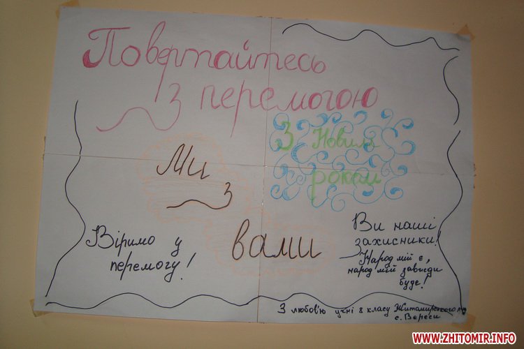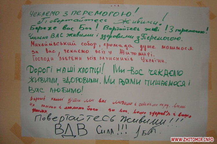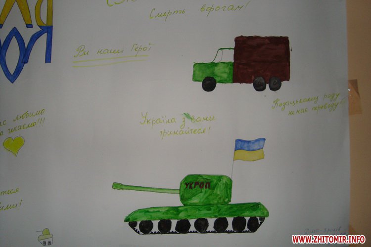На Східному фронті кожне розташування наших військових підрозділів прикрашають ікони, листи підтримки і дитячі малюнки, надіслані не тільки з Житомира, а й інших міст і областей: