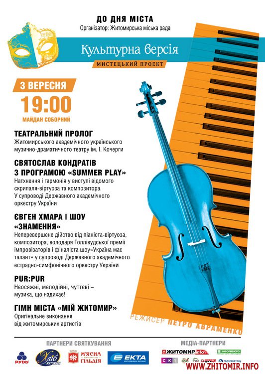 Третього вересня до Дня міста Житомирська мерія організовує «Культурну версію» свята.