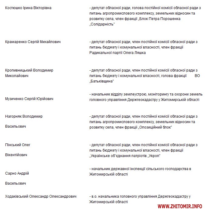 Нагадаємо, з ініціативою створити робочу групу виступив депутат від ВО «Батьківщина» Олександр Ніколайчук під час обговорення інформації про роботу головного управління Держгеокадастру у Житомирській області.