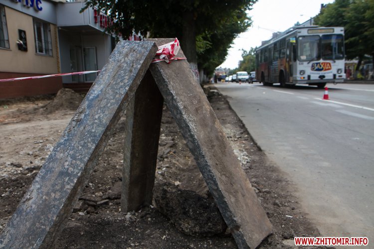 Нагадаємо, 12 серпня біля житомирського універмагу розпочалася реконструкція тротуару.