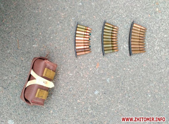 У Житомирі 3 вересня патрульні, зупинивши на вулиці підозрілого перехожого, виявили під час огляду в його рюкзаку 30 набоїв калібру 7,62 мм. Набої направлено на дослідження, триває перевірка.