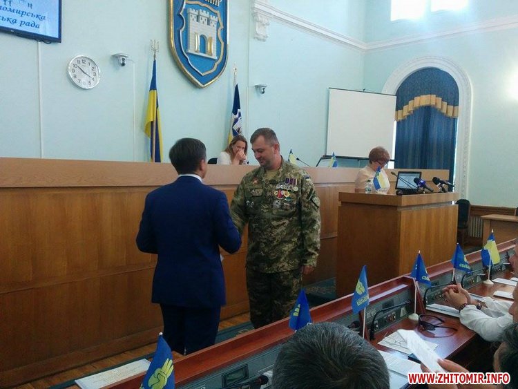 На початку засідання житомирянам вручали відзнаки президента – ювілейні медалі з нагоди 25-річчя незалежності України. Також були відзначені працівники патрульної поліції Житомира за забезпечення порядку та професійне виконання службових обов’язків під час святкування 1132-ї річниці від дня народження Житомира.