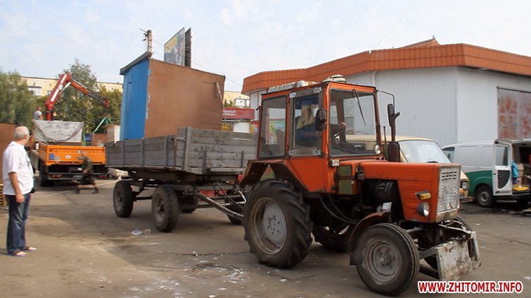 Підприємці, які кілька років тому незаконно встановили МАФи за адресою проспект Миру,15 в Житомирі, самотужки проводять демонтаж.
