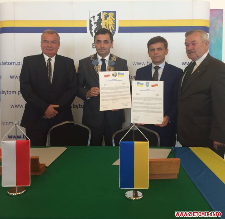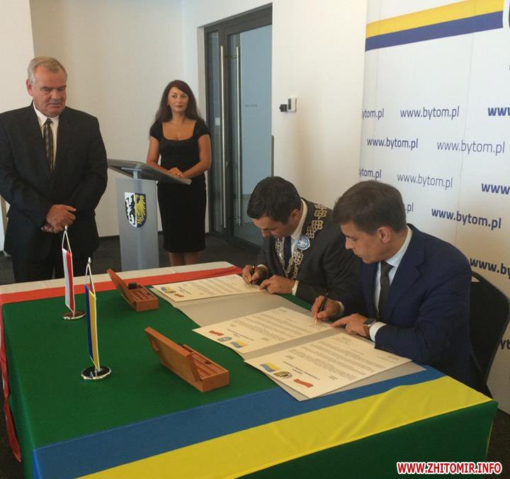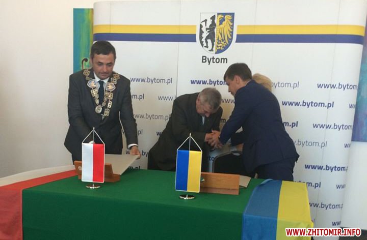 Житомирський міський голова Сергій Сухомлин підписав угоду про встановлення партнерських стосунків з польським містом Битом.
