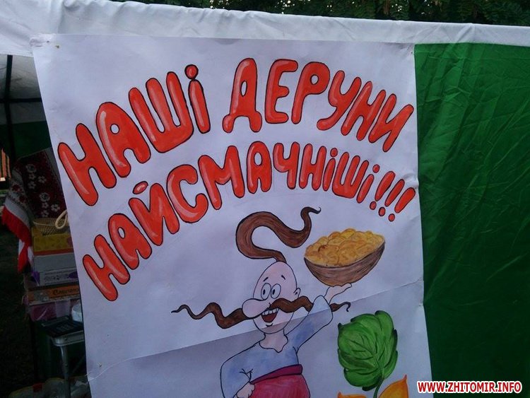Як повідомляв Житомир.info, в меню фестивалю - поліські страви та смаколики, деруни українські, «заморські» та «з викрутасами», майстер-клас з приготування дерунів від мера, «депутатські», «козацькі», деруни по-англійськи, польські, німецькі, соціальні та «халявні», дегустації страв та напоїв, а також розважальна програма.