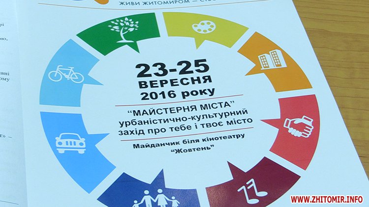 Упродовж трьох днів «Майстерні міста» житомиряни, представники влади та активісти зможуть поговорити на теми організації громадського простору, міської культури, велотранспорту, екології та енергоощадності.