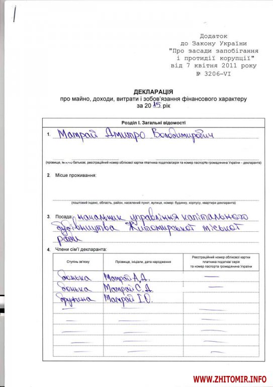 «12 сентября 2016 в Житомирском городском совете начато проведение проверки, предусмотренной Законом Украины «О очищении власти»: начальника управления капитального строительства городского совета – Мамрая Дмитрия Владимировича», - говорится в сообщении на сайте.