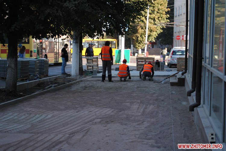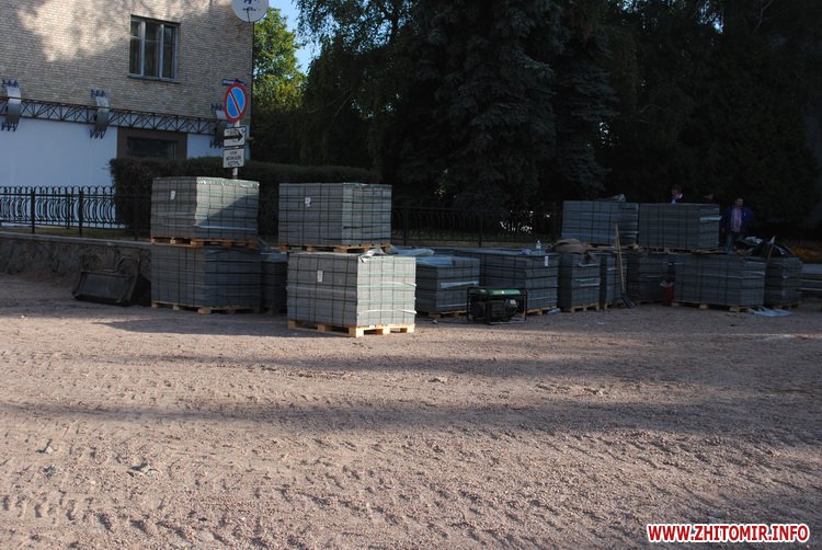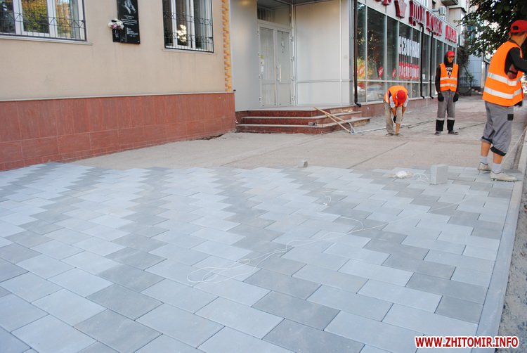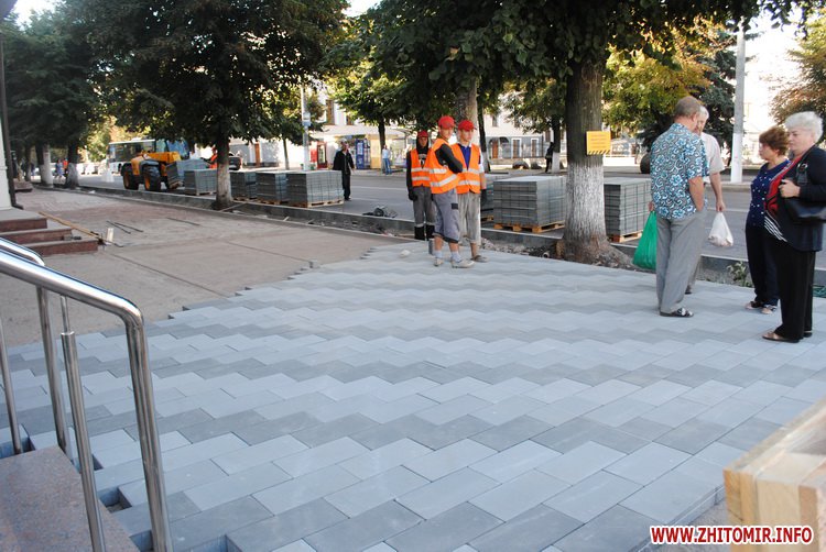 Як повідомляв Житомир.info, 13 вересня в Житомир привезли нову бетонну плитку, якою вистелятимуть міські тротуари. Плитка, якою львівська компанія замостить тротуари в центрі Житомира, буде в тому числі тактильною. Першу плитку, яку використають для капітального ремонту тротуарів центральних вулиць Житомира, мали привезти 5-6 вересня.
