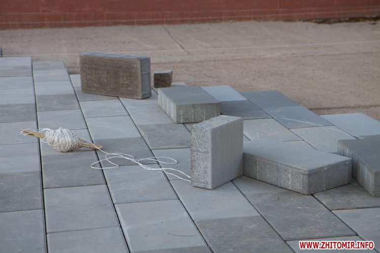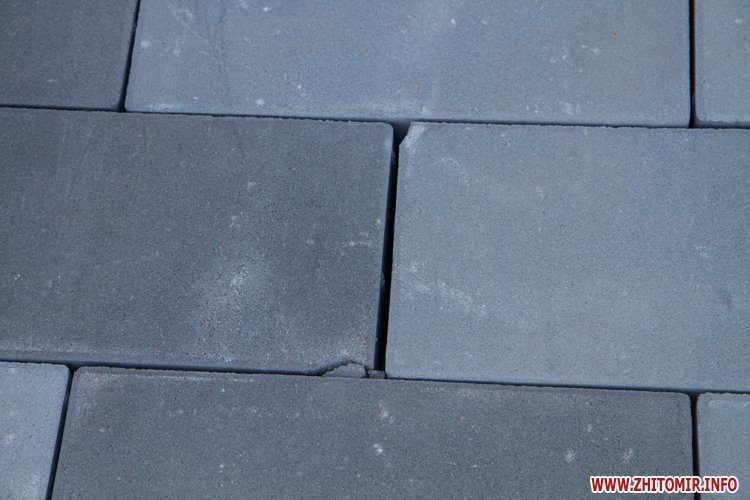 Нова бруківка, яку 14 вересня почали вкладати на тротуарі по вул. Театральній у Житомирі, подекуди тріснута або зі сколотими краями.