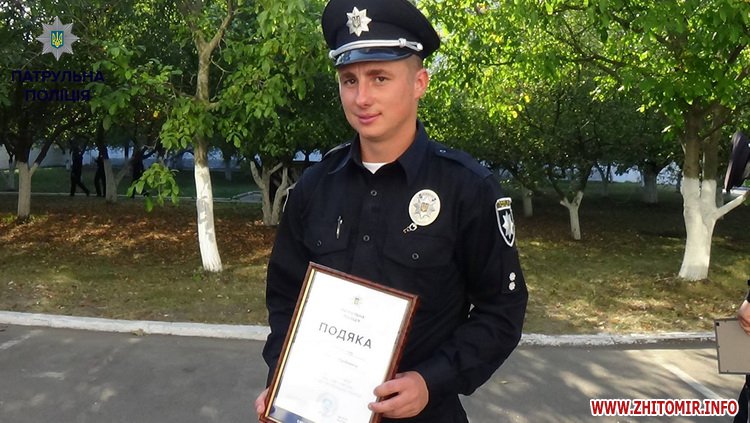 Зазначається, що начальник ДПП вручив житомирським патрульним подяки.