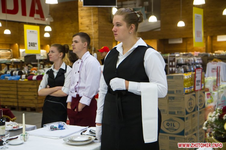 «Майданчик нашого чемпіонату поділений на кілька зон. Так, на окремих столах виставили свої роботи учасники за напрямком АРТ-клас (карвінг, торти, короваї, вироби з шоколаду, різні варіанти хліба). З іншого боку – сервіс-клас – це офіціанти, котрі демонструватимуть навики з обслуговування, сервірування столу, складання серветок, декантування вина. Також монтуються столи з обладнанням, де триватимуть практичні змагання: за результатами кинутого жеребу, учасники по черзі, по шість осіб, готуватимуть буквально на очах у глядачів. Загалом, участь у чемпіонаті беруть близько 60-ти учасників із Житомира та області. Ми також чекали на учасників із Черкас, але зважаючи на те, що завтра відзначається День їхнього міста, вони не змогли приїхати. Відмову ми отримали буквально сьогодні вранці. Сьогодні, 16 вересня, відбудеться основна частина практичних змагань, а завтра ми проведено найцікавіші класи, а також підіб’ємо підсумки чемпіонату, визначивши найкращого шеф-кухара серед юніорів (віком від 16-ти років), найкращого професійного шеф-кухара та найкращого майстра суші на кубки голови Житомирської облдержадміністрації та голови Житомирської міської ради. Завтра до 15:00 ми закінчимо всі етапи змагань тут (у ТЦ «МЕТРО», – ред.), а вже оголошення результатів відбудеться у розважальному комплексі «Каньон», – сказав Віктор Фіалковський.