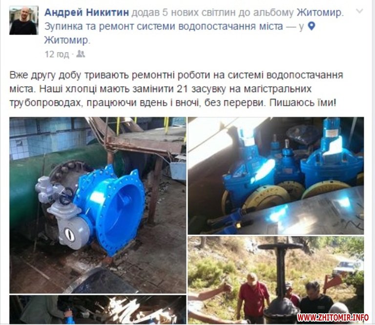 Про це на своїй сторінці в мережі Facebook написав директор КП «Житомирводоканал» Андрій Нікітін.