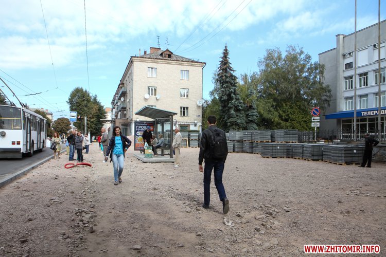 У Житомирі триває реконструкція центру міста. Зокрема на тротуарах по вулиці Театральній і на частині Київської продовжують класти нову плитку. Крім того, з центральних вулиць прибрали майже всі кіоски, які підлягають демонтажу у зв’язку з ремонтом.