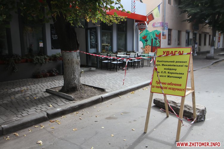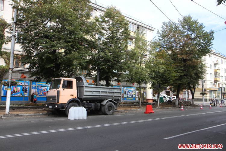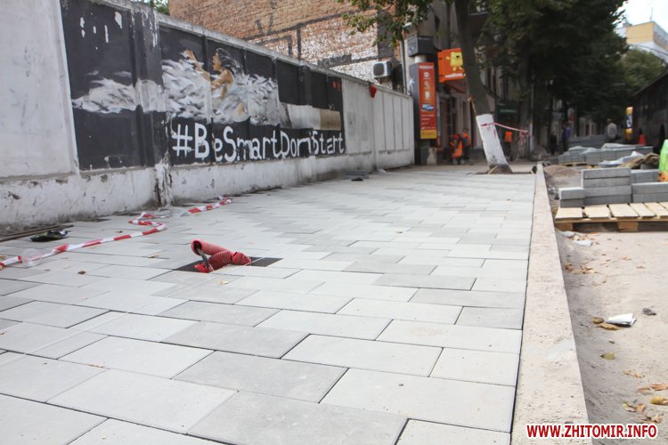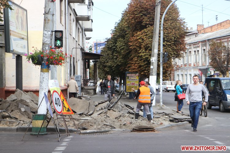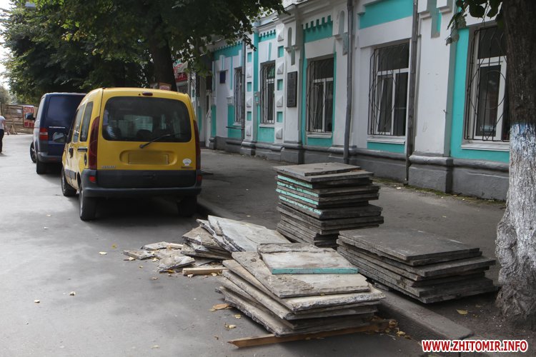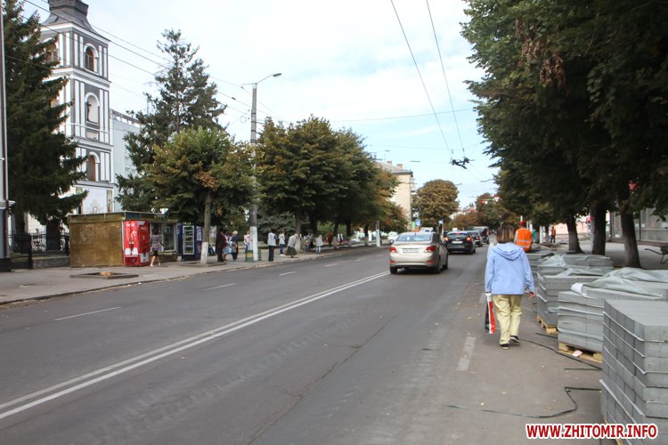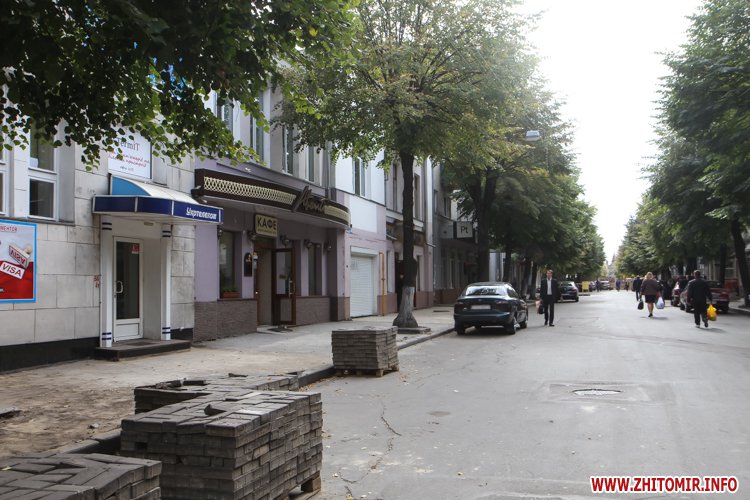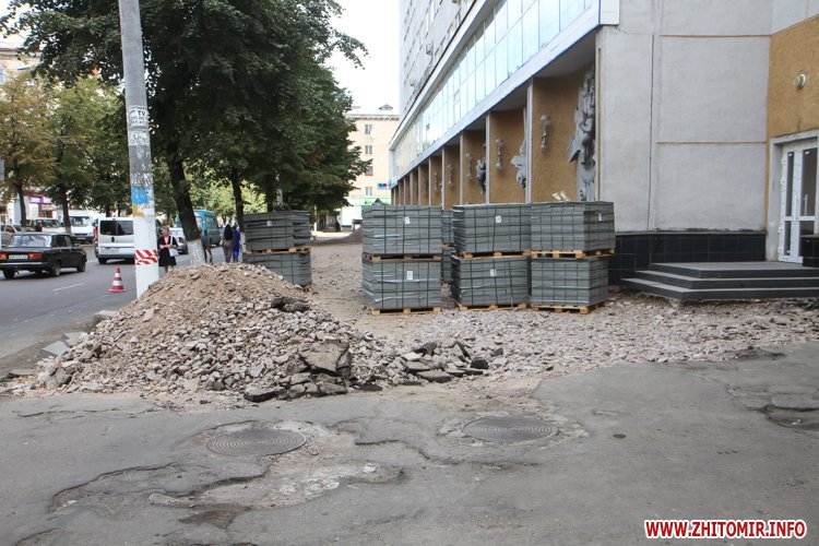Як повідомляв Житомир.info, 12 серпня по вулиці Київській розпочалася реконструкція тротуару. 17 серпня на узбіччі, навпроти Центрального універмагу, вже повністю був знятий асфальт і засипаний щебінь. 23 серпня ремонтні роботи стартували вже по вулиці Театральній, яка й стала першою, де на тротуарах пізно ввечері 14 вересня почали класти бруківку, яка почсати виявилася бракованою. Вже 16 вересня її замінили на нову. Зауважимо, нову бетонну плитку, якою вистелятимуть міські тротуари, до Житомира завезли 13 вересня. Того ж дня у Житомирі перекрили частину вулиці Михайлівської через реконструкцію, під час якої робітники віднайшли під асфальтом автентичну бруківку.