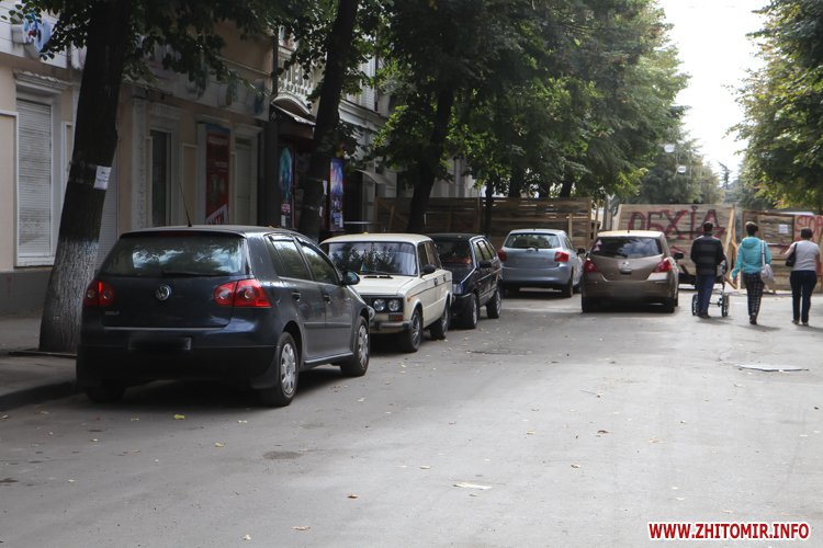 Разом із тим уздовж частини пішохідної вулиці Михайлівської, де ще не зірвано старе покриття, водії почали припарковувати автівки. На час зйомки фоторепортажу можна було побачити близько двох десятків машин.