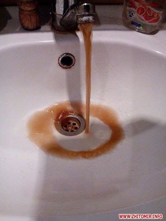 После того, как в Житомира на двое суток через проведение ремонтных работ было отключено водоснабжение, в кранах местных жителей продолжает течь ржавая вода. После проведения ремонтных работ в городе начались порывы уличных сетей.
