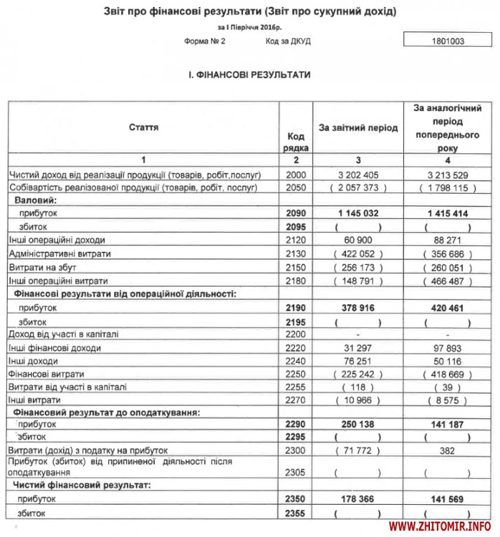 Звіт про фінансові результати ПАТ «Укртелеком» за І півріччя 2016 року.