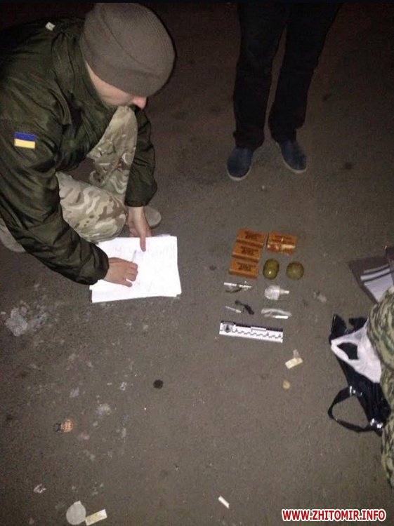 «Військовою прокуратурою Житомирського гарнізону Центрального регіону України, спільно із співробітниками Управлінням Служби безпеки України в Житомирській області, вночі, 27 вересня 2016 року, в порядку ст. 208 КПК України, затримано військовослужбовця, який маючи у володінні військове майно, що належить Міністерству оборони України в особі військової частини, здійснював продаж військового майна. Так, в рамках проведення контролю за вчиненням злочину у формі спеціального слідчого експерименту, задокументовано факт продажу військового майна - боєприпасів, а саме: 2 гранати, 2 запали до гранати, електродетонатори та тротилові шашки загальною масою 1 кг. В подальшому, під час проведення обшуку за місцем проживання було виявлено набої для стрілецької зброї, у кількості понад 500 шт. Вирішується питання щодо повідомлення особі про підозру у вчинені кримінального правопорушення, передбаченого ч. 3 ст. 410 КК України, та обрання запобіжного заходу», – повідомив Олексій Рихлюк.
