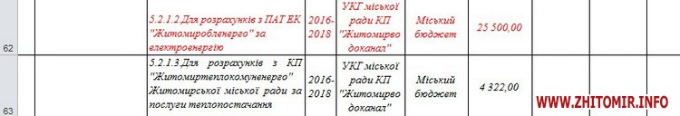 У додатку до проекту зазначається, що зміни планують внести в розділ «5.2.Внески до статутного капіталу КП «Житомирводоканал». У коментарі Житомир.info начальник управління комунального господарства Житомирської міськради Олександр Марцун розповів, що для розрахунків за електроенергію водоканалу депутати хочуть виділити 7,5 млн грн.