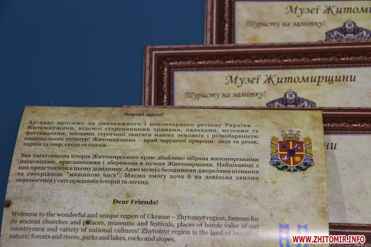У житомирському Домі української культури 29 вересня з нагоди Дня туризму відкрили виставку «Житомирщина туристична. Музеї», де представлені експонати із 23-х музеїв області.