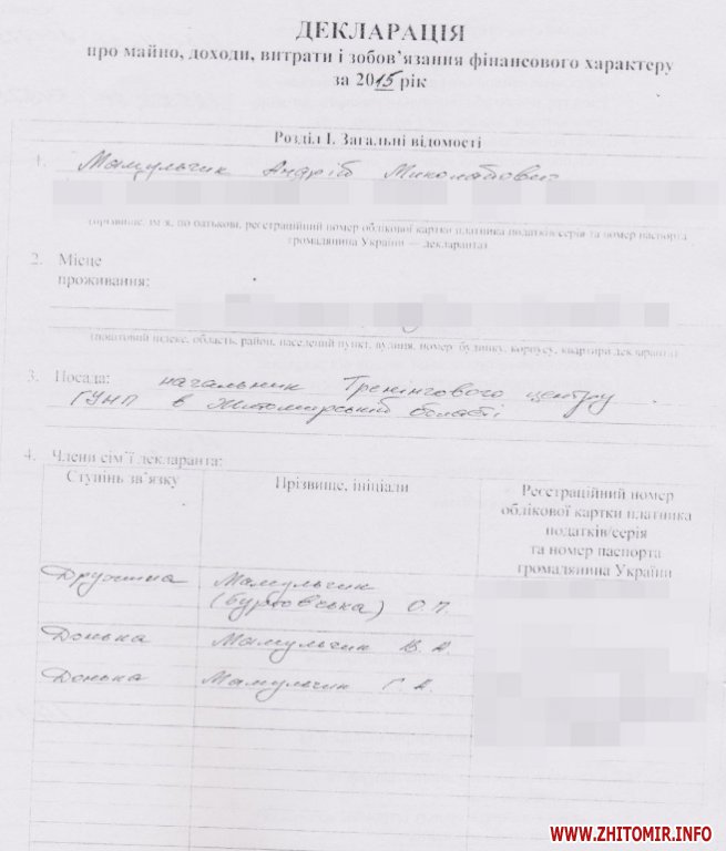 Полковник Андрей Мамульчик, который стал заместителем начальника ГУНП после назначения Вячеслава Печененко, до этого руководил Житомирским училищем профессиональной подготовки работников милиции, а ранее был начальником управления кадрового обеспечения УМВД в Житомирской области. Его доходы за прошлый год составляют 143 тыс. 774,41 грн, из которых: зарплата – 125 тыс. 933,60 грн; материальная помощь – 17 тыс. 840,81 грн. ,Доходы членов семьи (жена и две дочери) оставляли 204 тыс. 772,73 грн, из которых: зарплата – 54 тыс. 972,73 грн; доходы от отчуждения движимого и недвижимого имущества – 149 тыс. 800 грн.