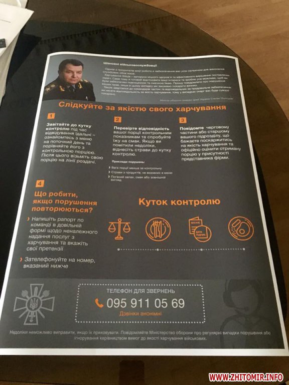 После проверки столовой житомирской 95-й отдельной десантно-штурмовой бригады офицеры получили выговоры от министра обороны Степана Полторака и лишились премий.