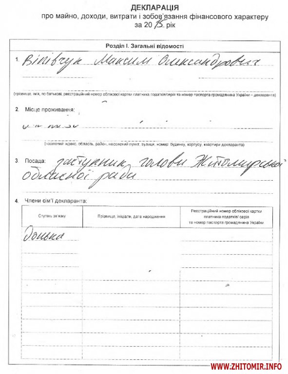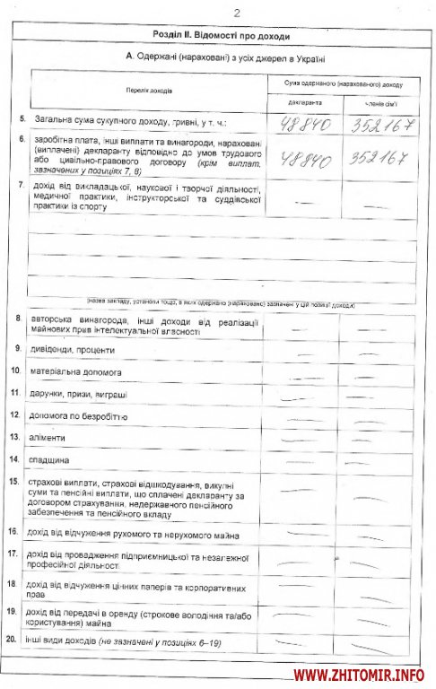 Доход нового первого заместителя председателя Житомирского облсовета в прошлом году не превышал 50 тыс.грн, а заместитель заработал свыше 350 тыс.грн.