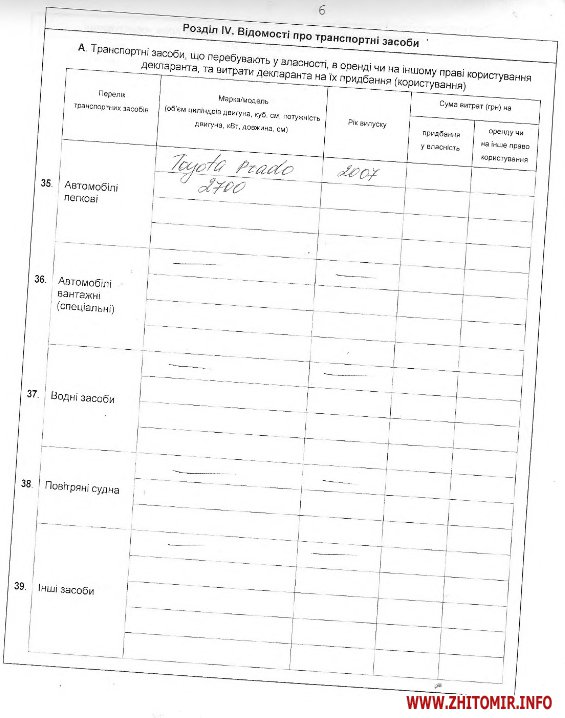 Первый заместитель председателя облсовета ездит та Toyota Land Cruiser Prado 2007 г.в., у его жены – Ford Fiesta 2012 г.в.