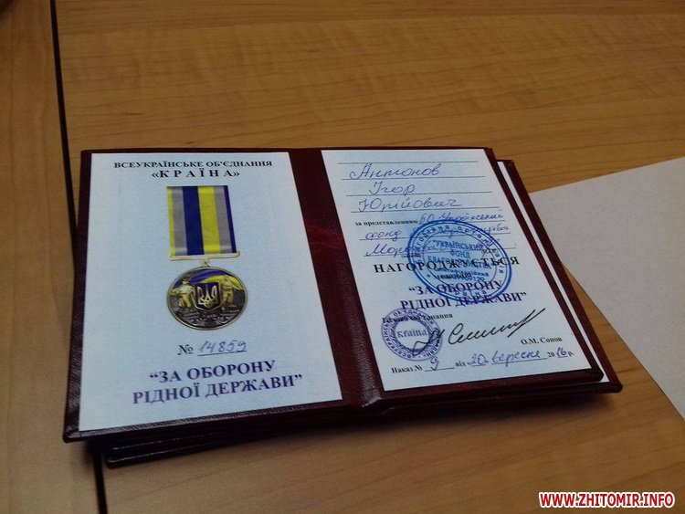 5 жовтня у прес-центрі Житомирської мерії, перед початком виконкому, мер міста Сергій Сухомлин вручив медалі волонтерам, які постійно їздять на Схід України.