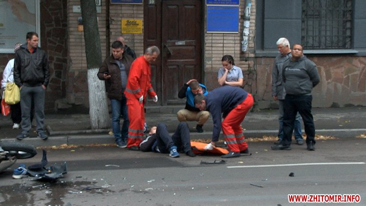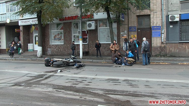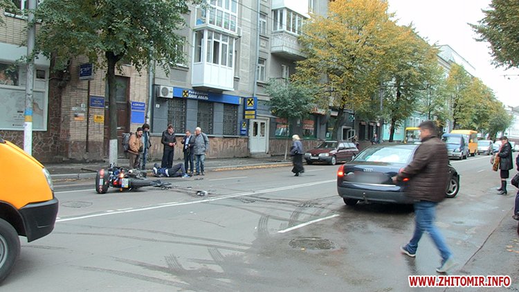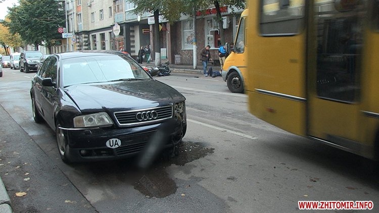 5 жовтня у Житомирі на вулиці Велика Бердичівська сталася ДТП за участю мотоцикла та автомобіля Аudi.