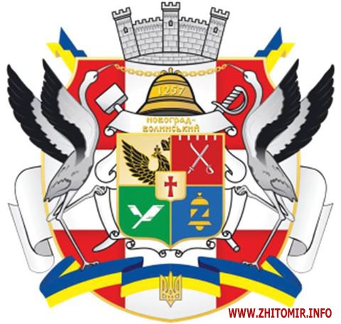 Герб міста Новограда-Волинського затверджений 12 жовтня 1994 року рішенням Новоград-Волинської міської ради. Автор герба Микола Олександрович Босенка — член Спілки архітекторів України.