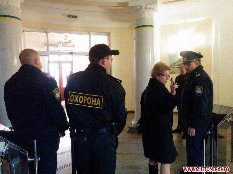 Перед початком сесії біля міської ради були помічені люди у військовій формі, а у вестибюлі - охоронці.
