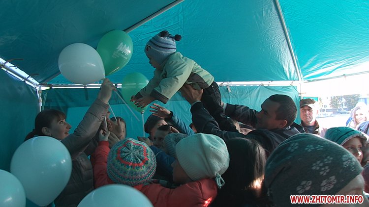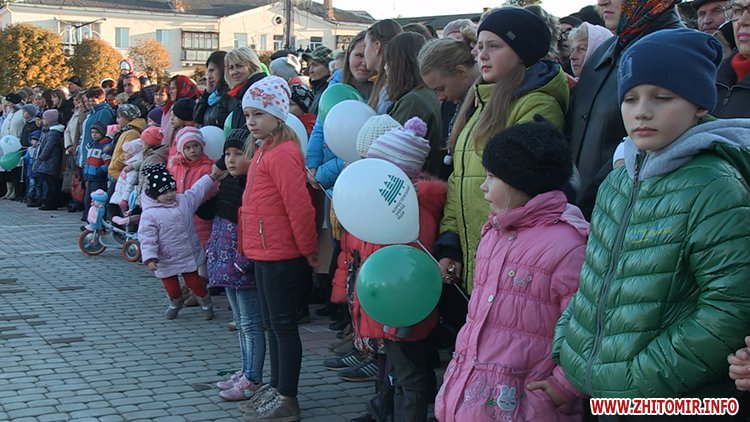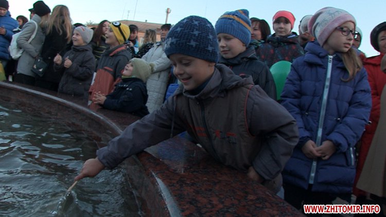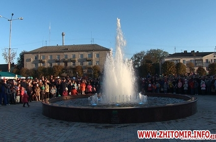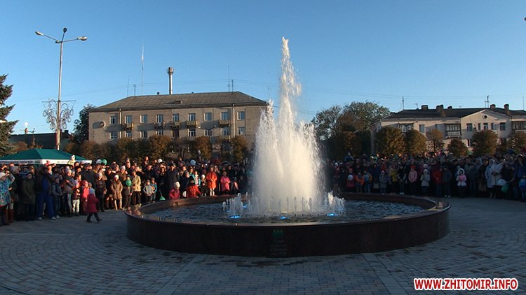 Із гучними оплесками та запальними дитячими танцями – саме так у Коростені на центральній площі міста відкривають фонтан, приурочений до свята Покрови та Дня захисника України. На урочистості зібралися сотні людей різного віку. Поки одні фотографуються, поспішають за кульками та цукерками, інші не втрачають можливості побовтатися у воді.