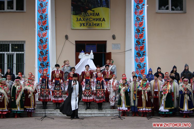 Як підкреслив у своєму виступі голова Житомирської райдержадміністрації Сергій Микитюк, протягом багатьох століть свято Покрови було головним для українських воїнів - від козацтва до Армії Української Народної Республіки та Української повстанської армії. Сучасна Українська держава є історичним та політичним спадкоємцем Русі, козацтва, визвольного руху та тисячолітньої християнської традиції. «Саме тому з 2014 року День захисника України ми відзначаємо якраз на Покрову. Це свято започатковане в нелегкі часи для вшанування мужності та героїзму захисників незалежності, суверенітету і територіальної цілісності України», - відзначив він.