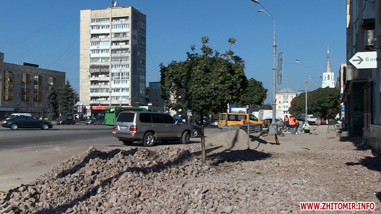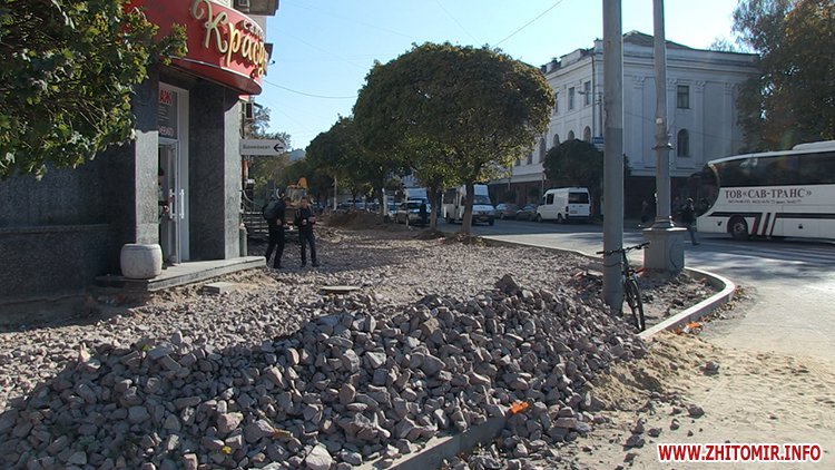 Будівельній компанії, яка займається реконструкцією тротуарів у центрі Житомира загрожують штрафні санкції за порушення термінів виконання робіт.