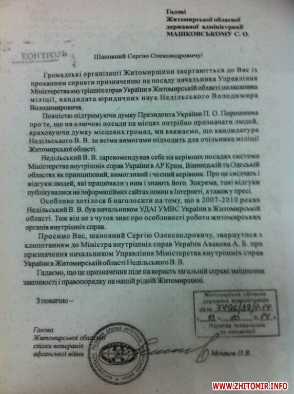 Цікаво, що менш ніж за місяць до наказу про звільнення, громадські організації рекомендували Недільського на посаду начальника УМВС України в Житомирській області: за нього «вписалися» голови «афганських» організацій Житомирської області, «Всеукраїнське об’єднання «Майдан» в Житомирській області, «Молодь ініціатор реформ» Сергія Фореста та ще декілька ГО, «раба Божого» на посаду також благословив архієпископ УПЦ Московського патріархату Нікодим.