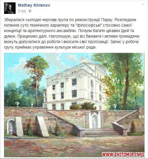 Про це на своїй сторінці у Facebook 20 жовтня написав заступник Житомирського міського голови Матвій Хренов.