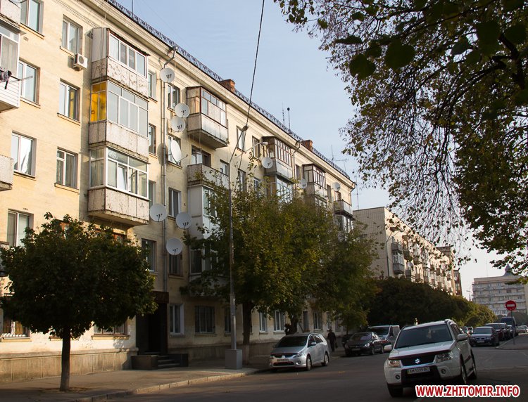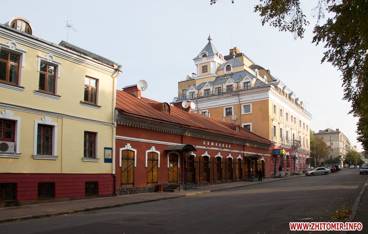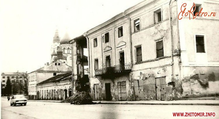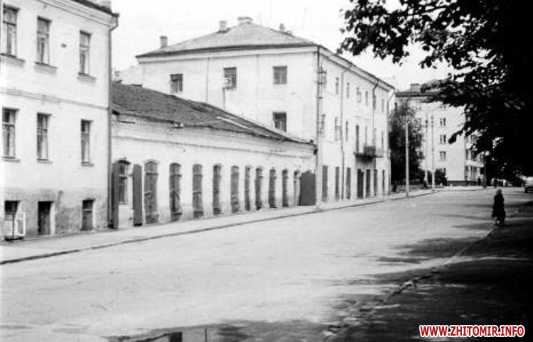 На правой стороне улицы уцелели Крестовоздвиженская церковь (которую после освобождения города оградили высоким деревянным забором и превратили в склад бакалейной базы), четыре жилых дома и одноэтажное здание торгового ряда из двенадцати лавок (после реставрации осталось одиннадцать лавок). Здание торгового ряда – это фрагмент торговых периметрических рядов средневековой площади Рынок, единственный сохранившийся памятник средневекового посада. Уцелел и единственный трехэтажный жилой дом средневекового Житомира с торговыми лавками на первом этаже, но его снесли в 1994 году новые хозяева нашего города, чтобы срочно построить на его месте здание для офисов и развлечений. Два одноэтажных дома снесли в 1960-х годах от ветхости.
