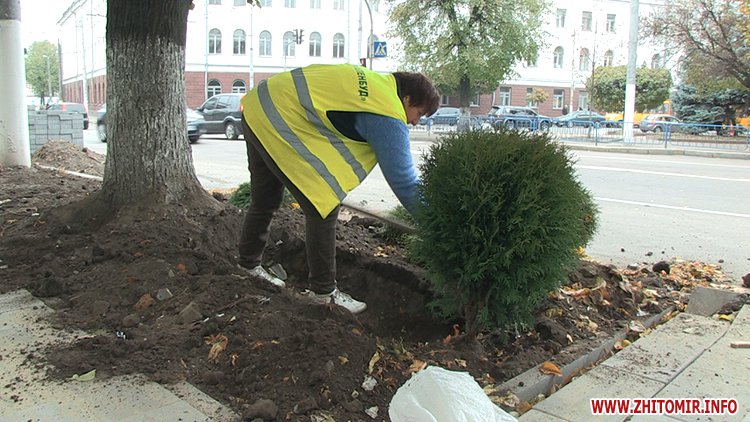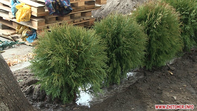 21 жовтня на вулиці театральній у центрі Житомира робітники КП «Зеленбуд» почали висаджувати туї, які, за задумом міської влади, повинні замінити залізні паркани між відреставрованими тротуарами та проїжджою частиною.