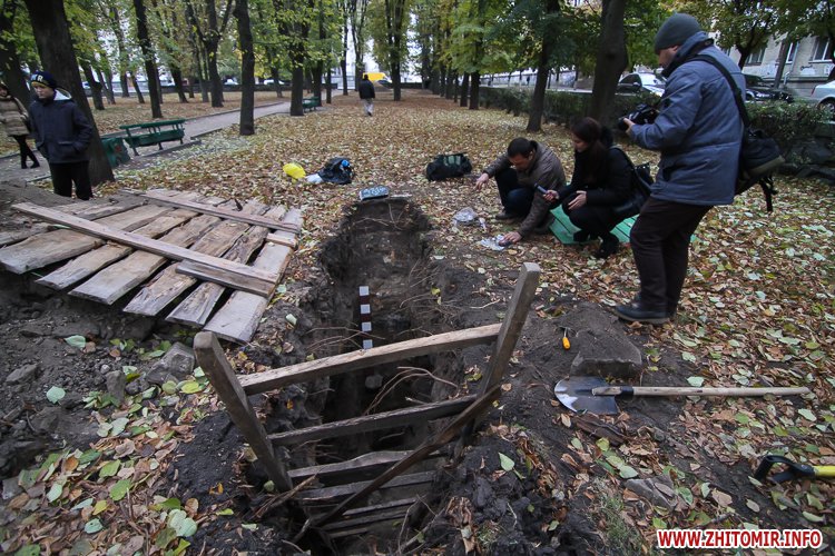 «Житомирська археологічна експедиція 2016 рік, сквер, шурф №8. Це ось з цього шурфа вискочила монетка, глибина 3 метри – це полторак», - археолог.