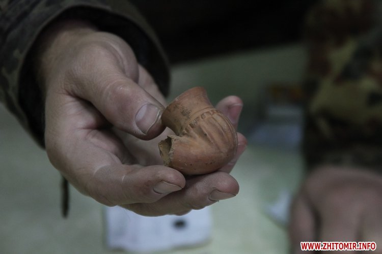 «Це керамічна пательня, в яку просто вставлялась дерев’яна ручка і ставилась на гас. Тут була знайдена іще люлька козацька – це 16 століття. А в суботу ми знайшли люльку, яка використовувалась і була навіть обпалена. Це от монета, скоріш за все період царизму, або «дєньга» 1754 року, або скоріше за все «цариця полів», а ось мушкетні кулі», - показує Віктор Потапенко.